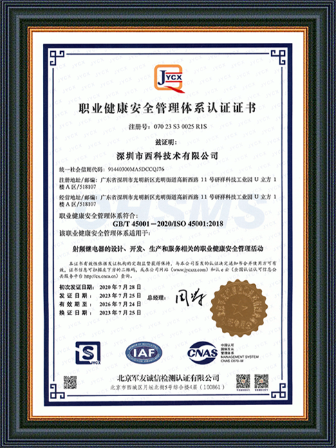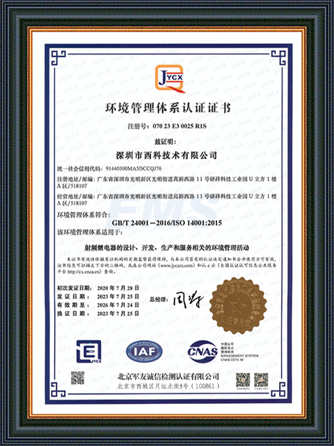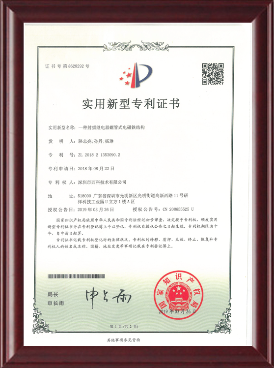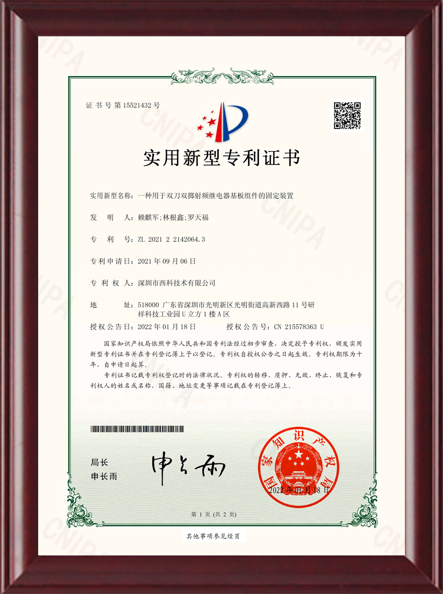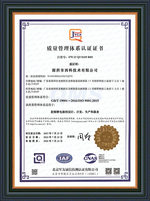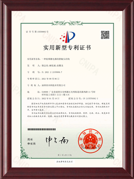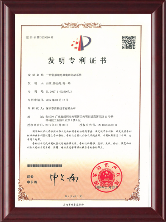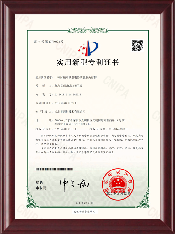 深圳市西科技术有限公司成立于2016年5月,现注册资本2650万人民币,是国内率先开展极高频射频继电器/微波继电器/射频开关/微波开关/同轴开关/机械开关研发的国家级高新技术中小型企业,集研发设计、生产、测试、销售为一体。公司已拥有频率覆盖DC~67GHz的射频继电器/微波开关多系列产品,拥有GJB9001C/ISO9001、ISO14001/ISO45001、GB/T29490-2013体系认证,发明专利10余项、软件著作权9项,在射频继电器领域累计申请专利数量50多项(国内业内专利占比超过60%),可为高速线缆测试、测试开关矩阵、精密测量装备、无线通信、微波雷达、卫星通信与导航等系统提供射频/微波控制器件和解决方案。